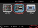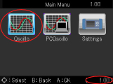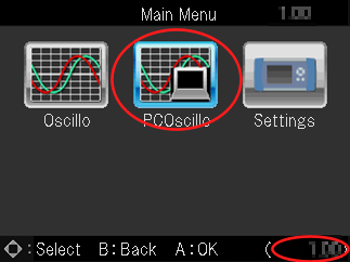 - Select "DST-i Oscilloscope" and check the version displayed on the lower right of main menu screen. (Red circle in the figure)