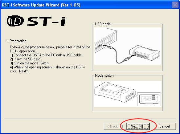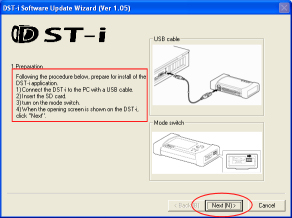 - When the preparation on the "DST-i Software Update Wizard" dialog is completed, click “Next”.