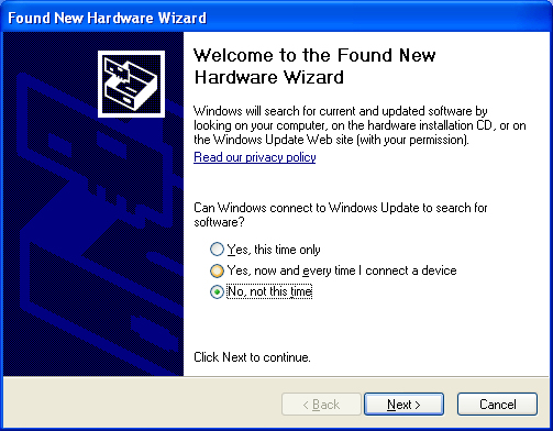 *Follow the procedure in the following link when "Found New Hardware Wizard" window appears.