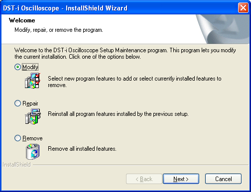 *If setup maintenance program is displayed, you have already to install the the DST-i PC Oscilloscope Software.