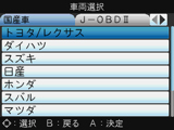 - メーカ選択画面が表示されることを確認します。また、正常に車名選択が行えることもご確認ください。