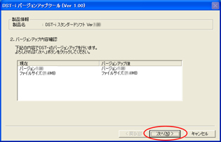 ※現在とバージョンアップ後のバージョンが同じ場合にはバージョンアップは必要ないため「キャンセル」をクリックします。