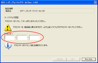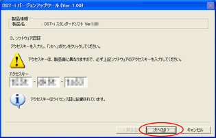ソフトウェア認証画面で、本ソフトウェアのライセンス証に記載されているアクセスキーを入力します。