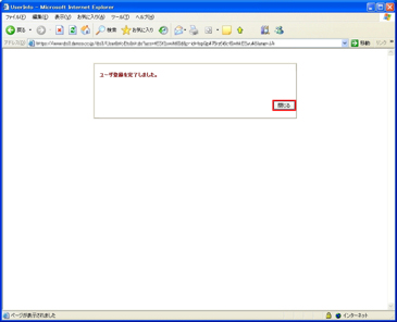 - ユーザ登録が完了しましたら、「閉じる」を押してブラウザを終了します。