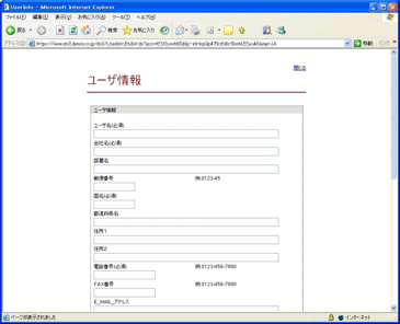 - ユーザ情報登録画面が表示されますので、お客様の情報を入力します。